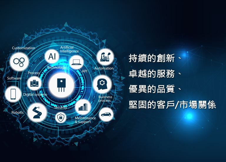 本公司努力開發(fā)第三代半導(dǎo)體相關(guān)應(yīng)用於電源管理的IC元件,致力於增加電子產(chǎn)品的轉(zhuǎn)換效率和節(jié)能省碳的功效,進而提升成為世界級電源管理IC元件的品牌。